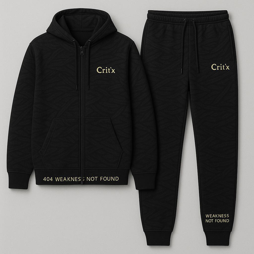 Step up your street wear game with the Crit’x Premium  Tracksuit, a bold statement piece designed for comfort, confidence, and style. Crafted from high-quality fabric with a subtle textured pattern, this set delivers a sleek, modern look perfect for both casual outings and lounge days.